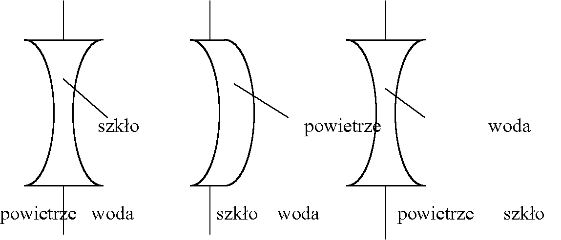 Ogniskowa soczewki zbierającej o wspó³czynniku za³amania n = 1,5 jest równa 5 cm. Jaka bêdzie ogniskowa tej soczewki po zanurzeniu jej w wodzie?