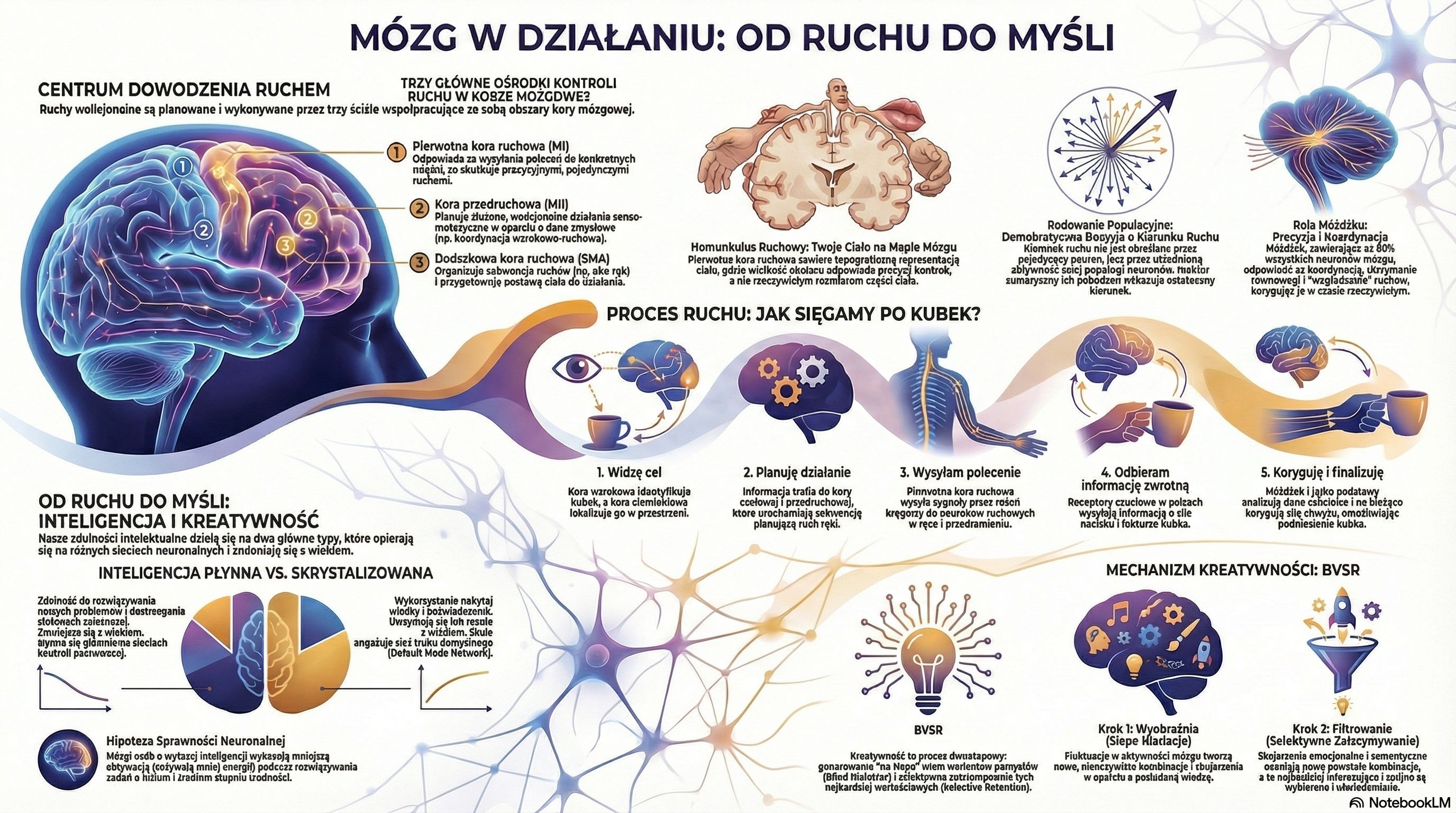 18.1. Kontrola ciała | 18.2. Plany ruchów | 18.3. Ruchy automatyczne | 18.4. Móżdżek | 18.5. Ruchy wolicjonalne i zaburzenia ruchu | 18.6 Inteligencja i geniusz | 18.7 Kreatywność | 18.8 Talent |