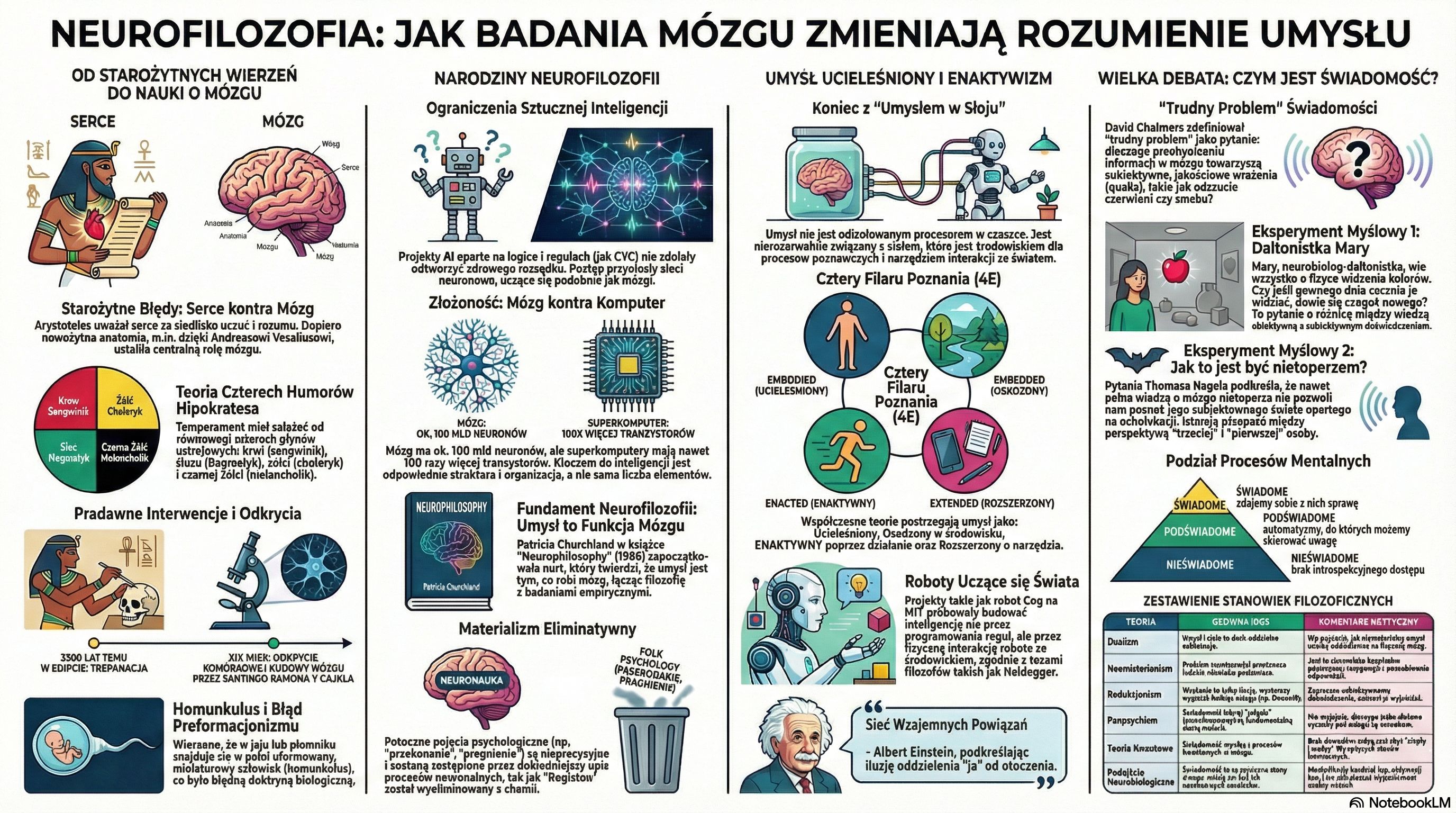 29.1 Medycyna i wczesne badania empiryczne. 29.2. Potrzeba neurofilozofii | 29.3. Fenomenologia | 29.4. Umysł ucieleśniony | 29.5. Neurofilozofia | 29.6. Enaktywizm i znaczenie ciała | 29.7. Współczesne dyskusje dotyczące świadomości | 29.8. Świadomość potraktowana neurofilozoficzne | 29.9 . Podsumowanie. Kompromisy ewolucyjne 29.10. Perspektywy kognitywistyki.