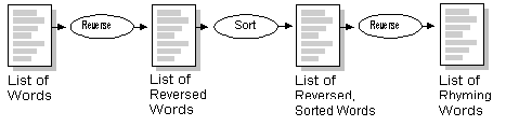 Let's look at a program, called RhymingWords(in a .java source file), that implements what's represented in the previous figure. This program uses PipedReader and PipedWriter to connect the input and output of its reverse and sort methods to create a list of rhyming words. Several classes make up this program.