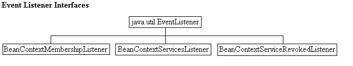 There are two distinct types of BeanContext included in this protocol: one which supports membership only (interface java.beans.beancontext.BeanContext(in the API reference documentation)) and one which supports membership and offers services (interface java.beans.beancontext.BeanContextServices(in the API reference documentation)) to its JavaBeans nested within.