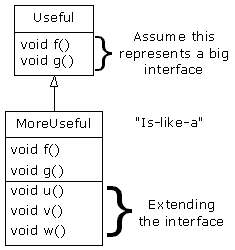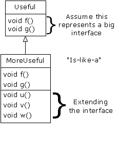 extends the interface of Useful. But since it’s inherited, it can
